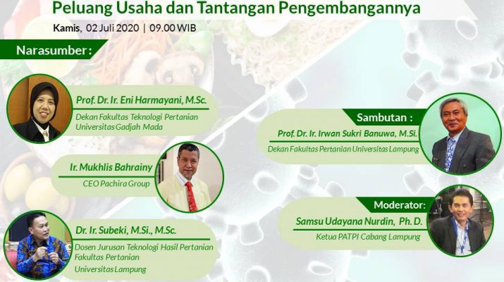 Jurusan THP FP Unila menyelenggarakan kegiatan webinar dengan topik “Bisnis Makanan Tradisional Pasca Pandemi: Peluang Usaha dan Tantangan Pengembangannya” pada tanggal 02 Juli 2020